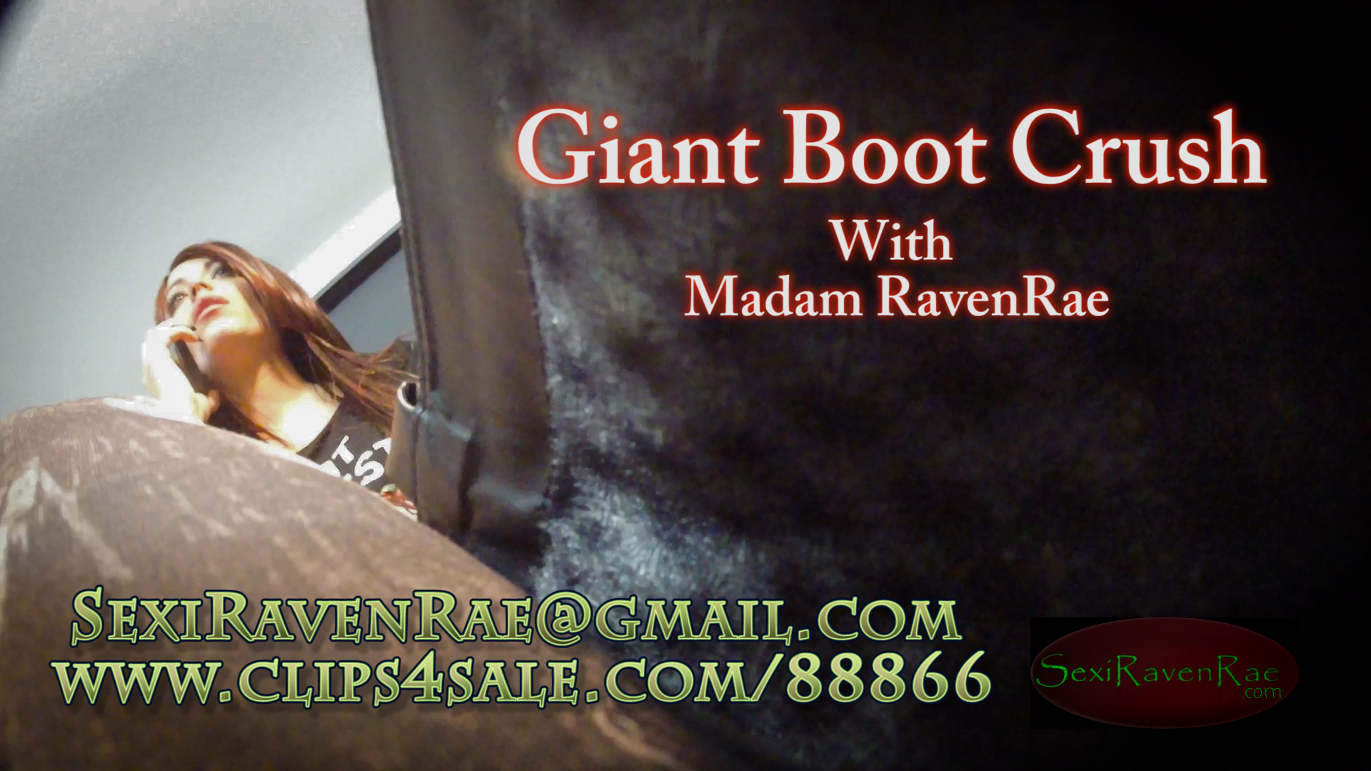Madam RavenRae just got back from a concert with a girlfriend after letting her girlfriend know that she was back at the hotel safely she starts to get comfortable and takes her dirty sweaty smelly concert boots off. On this trip however, she didn't realize a tiny slave snuck into her bag to be close to her for the concert. He waits inside the hotel for her to come back and when she does he sees his opportunity and is able to get inside of her sweaty rock boots! But she hasn't heard from her friend... So back on the boots go and once Raven knows everything's fine she can finally take them off for the rest of the night and sit down with a nice glass of wine. Unaware that she has a tiny visitor who is just too small to notice underneath her foot! Oooops!
